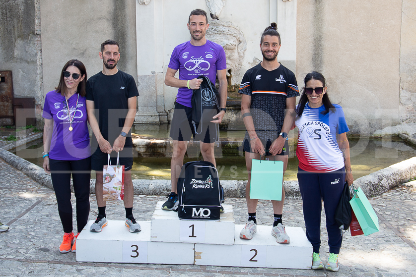 I 5 giri attorno alla Rocca Albornoziana con vita panoramica sulla valle spoletana hanno visto la vittoria, tra gli uomini, di Alessio Malfagia della Podistica Lino Spagnoli, seguito sul podio da Battista Vennera (Ama Civitanova) e Gianluca Falchi (Atletica Winner Foligno).
