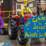 ogramma per il 188° Carnevale di Spoleto. Dopo il grande successo della scorsa settimana , questa domenica il serpentone colorato, nonostante la leggera pioggia, si è snodato per le vie della zona bassa della città da via Flaminia al centro commerciale Emi superstore nel quartiere di San Nicolò, percorrendo viale Trento e Trieste, viale Marconi, via Repubblica, via Risorgimento e via Betti . In un bellissimo scenario grazie alla consueta e consistente partecipazione di pubblico, oltre mille persone in maschera hanno sfilato con i carri realizzati dai vari gruppi cittadini: Amici di Cortaccione (Frozen); Associazione il Bruco (Il Nettare di Bacco), Pro Loco Bazzano (Il Mago Merlino), Centro intergrato per l’infanzia di Morgnano (Shaun), Circolo Acli di Baiano (Casa di Topolino), i Caciaroni a Colori e Scuola Maesre Pie Filippini (Alice nel Paese delle Meraviglie), Imprevedibili (Lego), Aleandro Piccioni e San Nicolò (Gli Ultimi Miti a Spoleto), Rione San Nicolò (Cattivissimo Me), San Martino in Trignano (Che Circo…a San Martino), Scuola dell’Infanzia di Protte (Il Folletto Pacifico). Il carnevale di Spoleto non finisce qui, martedì 9 febbraio sono in programma a partire dalle ore 14.30 tre feste di quartiere: Circolo Acli a Baiano, Amici di San Martino in Trignano e alla Scuola dell’Infanzia di Protte. L’ultimo appuntamento della 188 edizione é quello di domenica 14 febbraio alle ore 14 in Piazza Garibaldi, Corso Garibaldi e via dei Gesuiti con “Cane…Vale”, una gara, per raccogliere fondi a favore del Canile Municipale, che premierà la migliore maschera dedicata agli amici a 4 zampe una manifestazione realizzata insieme a: CENTRO CINOFILO CUMA e BOBAWASH. Tra i premi a tema quelli per la miglior coppia (cane/padrone – cane/cane), premio venere (cane più elegante), premio Don Giovanni. Premi anche per la miglior maschera, miglior duo e miglior gruppo.