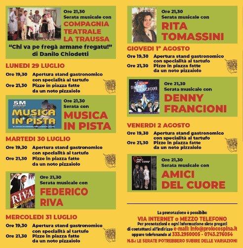 Dal 27 Luglio al 3 Agosto 2019 a La Spina di Campello è in corso la 36° sagra del tartufo e dei prodotti tipici.