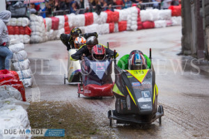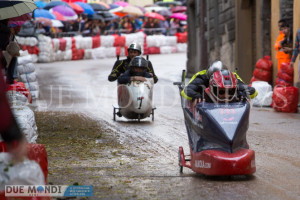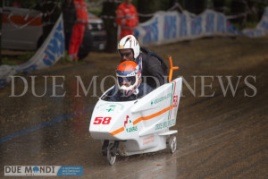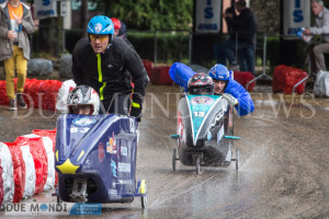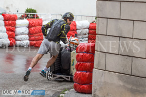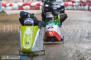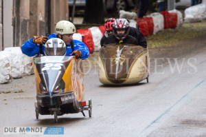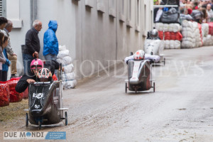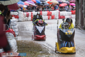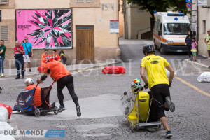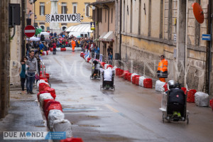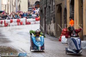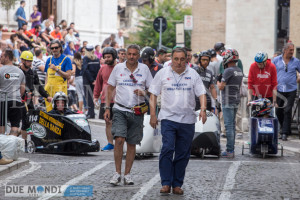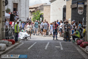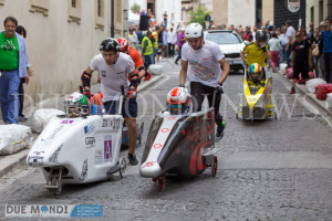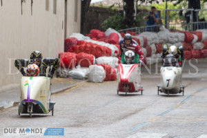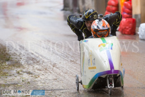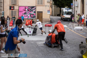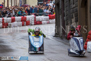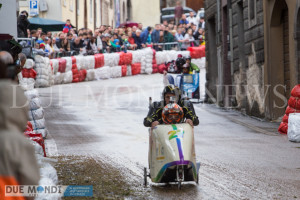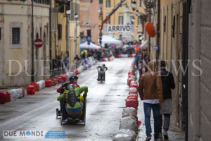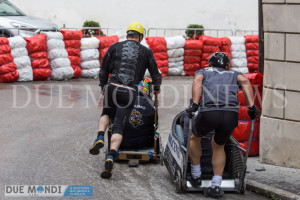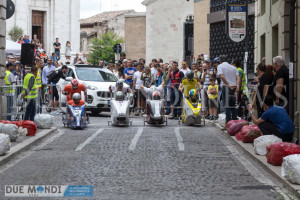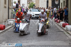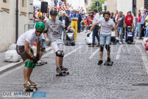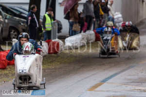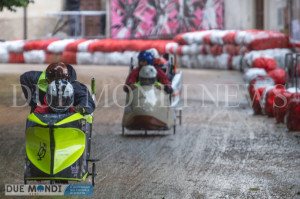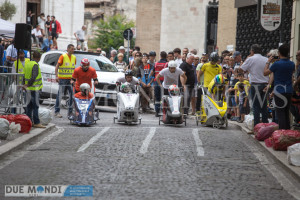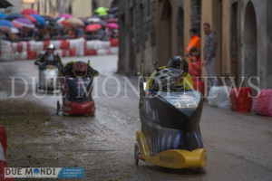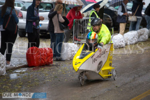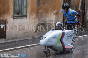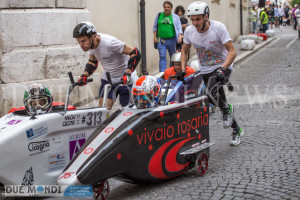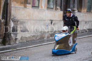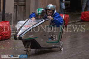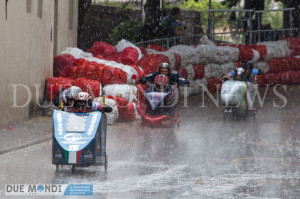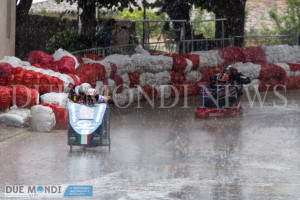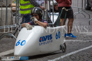 La pioggia non ha fermato la cinquantaduesima edizione della ‘Corsa dei Vaporetti’, nonostante lo zampino di Giove Pluvio in migliaia tra spoletini e turisti si sono assiepati lungo i 1250 metri che separano la partenza di Piazza Pianciani con l’arrivo di Piazza Garibaldi armati di ombrelli, impermeabili e soprattutto tanta voglia di godersi la tipica corsa spoletina. A vincere l’edizione 2016 della ‘corsa più pazza del mondo’ è stato l’equipaggio numero 33 Tecnokar formato da Simone Basili e Marco Luzzi che nella accesissima sfida finale della manifestazione hanno avuto la meglio sugli equipaggi 8 ‘Il Caminetto’ Brufani-Sartini, 3 ‘Pietro Coricelli’ Zampolini-Discepoli e 23 ‘Bar Moriconi’ Marceddu-Palmisano.