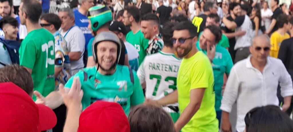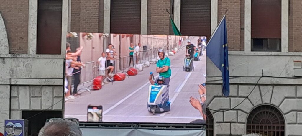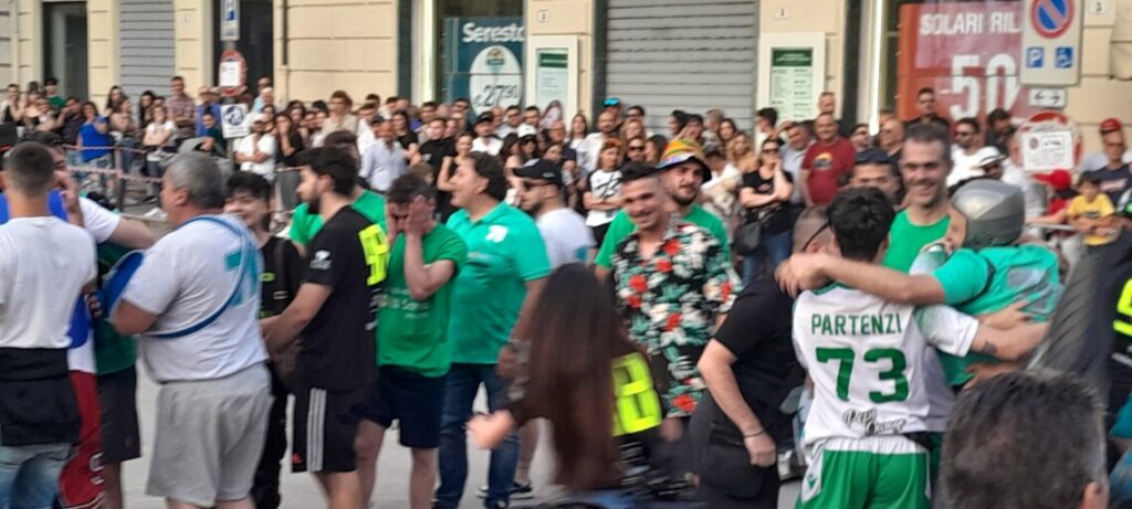 L’equipaggio n.71 in trionfo al traguardo di piazza Garibaldi