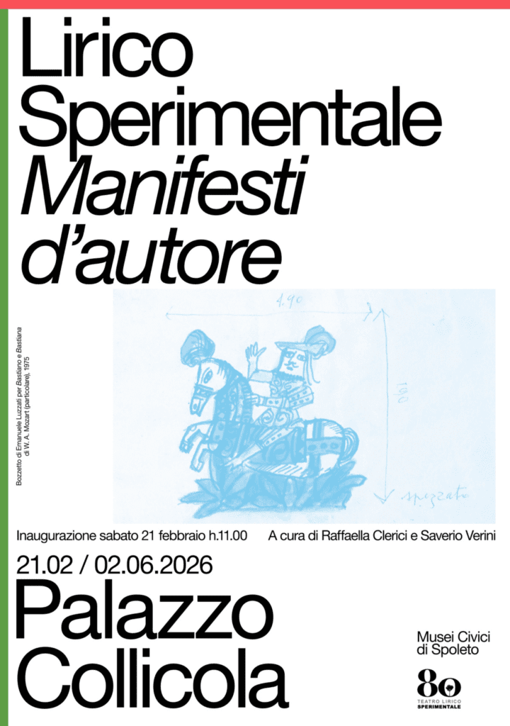 Sabato 21 febbraio 2026 alle ore 11.00, saranno inaugurate a Palazzo Collicola le nuove esposizioni primaverili tra cui Lirico Sperimentale. Manifesti d’autore.