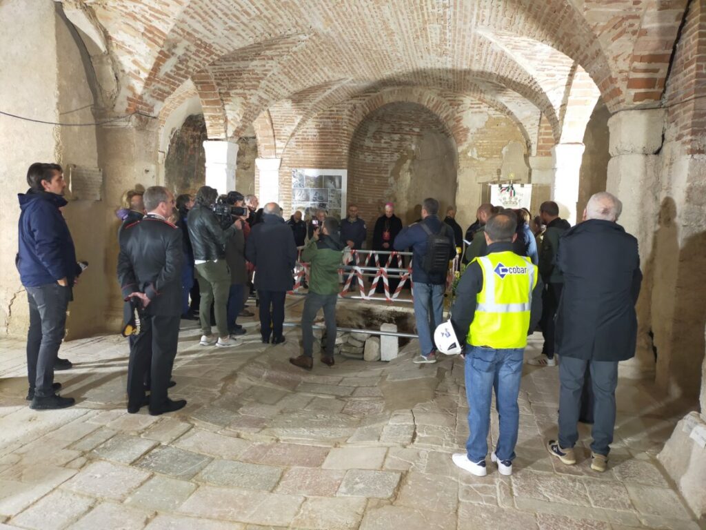 Domenica 30 ottobre 2022: esattamente sei anni fa, e sempre di domenica, un violento terremoto ha ferito e trasfigurato Norcia e la Valnerina. Alle 7.40 l’arcivescovo di Spoleto-Norcia mons. Renato Boccardo ha presieduto un momento di preghiera per fare memoria di quanto accaduto. E il luogo scelto è altamente significativo: la cripta della Basilica di S. Benedetto, simbolo del sisma del 2016. È stata ricostruita la volta, sono stati ricollocati gli antichi pilatri, è stato ricostituito quell’antichissimo ambiente, luogo di devozione, di arte e di storia che è la cripta, dove secondo la tradizione sono nati i santi gemelli Benedetto e Scolastico. Col Presule sono scese in cripta, in totale sicurezza, 25 persone, tra cui: il sottosegretario di Stato alla Presidenza del Consiglio dei Ministri Alfredo Mantovano, la presidente della Giunta regionale dell’Umbria Donatella Tesei, il commissario straordinario alla ricostruzione Giovanni Legnini, il Capo del dipartimento di Protezione Civile Fabrizio Curcio, la presidente della Provincia di Perugia Stefania Proietti, il sindaco di Norcia Nicola Alemanno, il soprintendente speciale per le aree colpite dal sisma Paolo Iannelli, il parroco di Norcia don Marco Rufini, il priore dei monaci benedettini padre Benedetto Nivakoff. Le persone presenti hanno assistito alla cerimonia, dalla Piazza, attraverso dei monitor.
