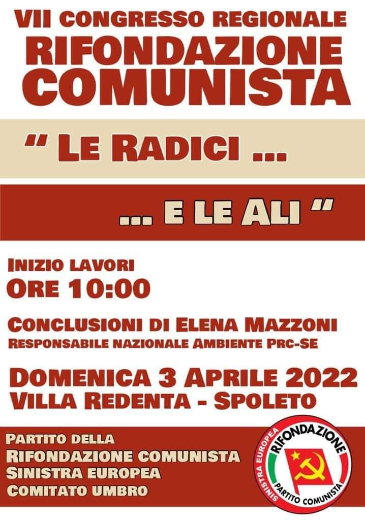 Il VII Congresso Regionale del Partito della Rifondazione Comunista dell’Umbria si celebra in un periodo terribile del mondo: il conflitto Russo-Ucraino, la crisi energetica, la crisi economica e la conseguente inflazione. La crisi ambientale e sanitaria. La difficile ripresa post pandemica. La difficile situazione regionale acuita dal malgoverno leghista: la sanità per pochi, le preoccupanti giravolte sugli inceneritori, la pessima gestione della pandemia fanno della Giunta Tesei la peggiore degli ultimi decenni.