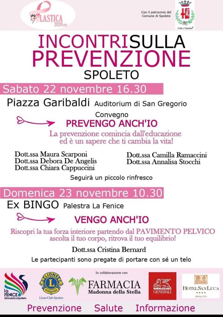 In contemporanea, Plastica2020 ha organizzato due eventi dedicati. Sabato 22 novembre alle 16,30 presso l’Auditorium San Gregorio in Piazza Garibaldi, si terrà il convegno “PREVENGO ANCH’IO”, un incontro ricco di vari professionisti che affronteranno il tema della prevenzione. Con la Dott.ssa Maura Scarponi si parlerà di corretta alimentazione, la Dott.ssa Debora De Angelis e la Dott.ssa Chiara Cappuccini forniranno una panoramica sull’importanza di effettuare esami di screening HPV e HCV tumore al colon, la Dott.ssa Camilla Ramaccini metterà in luce l’importanza del supporto psicologico nell’affrontare il vissuto relativo alla malattia in tutte le sue fasi, dalla diagnosi al follow up, la Dott.ssa Annalisa Stocchi esporrà tematiche di diagnosi e attività preventive del tumore al seno e un rappresentante delle assicurazioni Generali presenterà prodotti assicurativi a tutela e garanzia della salute del cittadino.