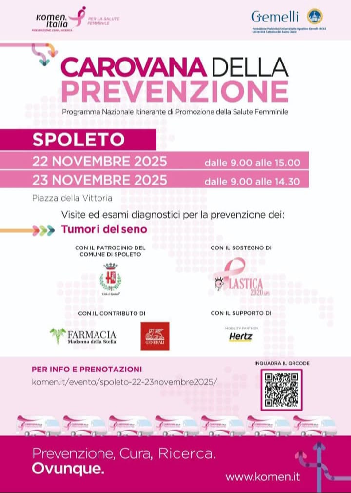 Ecco il link di prenotazione per tutte le donne interessate e che rientrano in tali parametri: https://komen.it/evento/spoleto-22-23novembre2025/ .