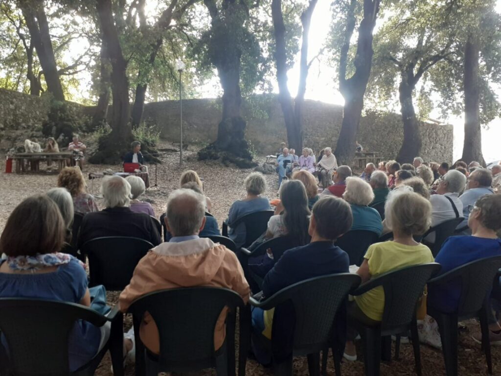 Lorenzo Pavolini, scrittore, vicedirettore della rivista Nuovi Argomenti e, con Davide Sapienza, autore dei podcast Nelle tracce del lupo e Ghiaccio sottile (RaiPlaySound), ha parlato per oltre un’ora e mezza in un’atmosfera suggestiva, nella splendida cornice di Lecci secolari del Bosco Sacro di Monteluco ed accanto al convento francescano: «Il tema del Lupo è molto legato alla nascita della cultura occidentale – ha spiegato fra le altre cose -, esistono trattati meravigliosi sul Lupo nella nostra storia, tra realtà e leggenda”.