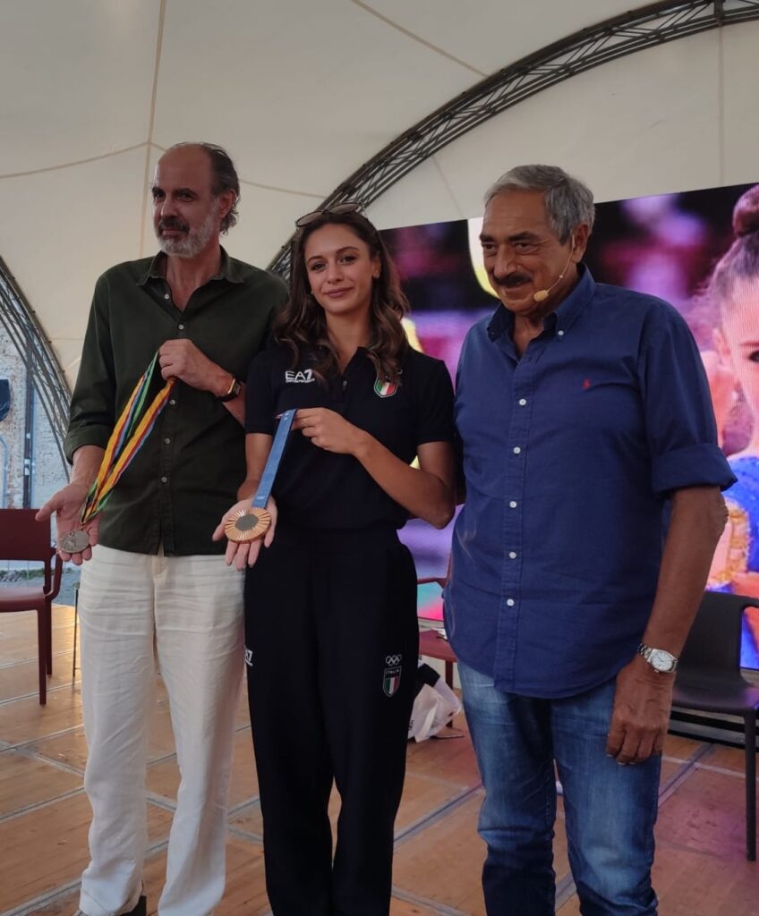 Al termine di questo momento Ludovica Casellati ha invitato tanto Duranti che Brunamonti a mostrare al folto pubblico le medaglie ottenute ed è partito un lunghissimo applauso con cui la città ha omaggiato i suoi campioni che si sono anche sottoposti al rito di autografi e selfie.