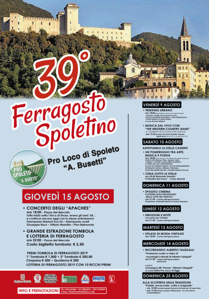 (DMN) Spoleto – prende il via da domani, venerdì 9 agosto, la 39° edizione del Ferragosto spoletino, organizzato dalla Pro Loco “A. Busetti” ed inserito degli eventi di Spoleto d’Estate.