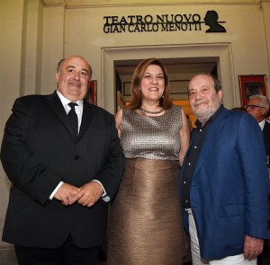 - 30/06/2017 Festival di Spoleto. Teatro Nuovo Giancarlo Menotti. Foyer della prima dell’ Opera Lirica Don Giovanni. Nella foto il sindaco Fabrizio Cardarelli, il direttore Giorgio Ferrara e il presidente regione Umbria Catiuscia Marini
