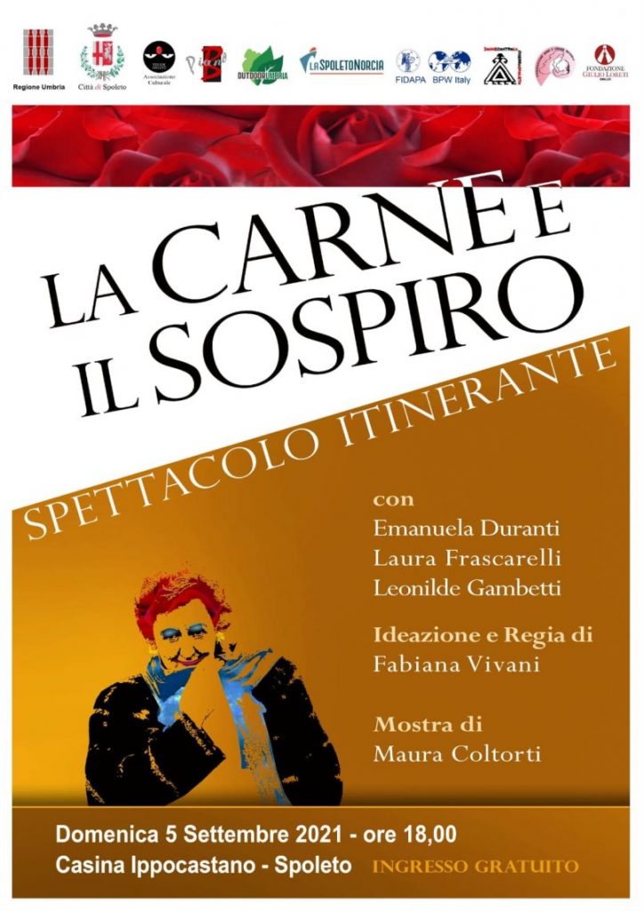 “La carne e il sospiro”, questo il titolo dello spettacolo itinerante che si terrà a Spoleto domenica 5 settembre alle ore 18.00 a partire dalla Casina dell’Ippocastano, e che chiuderà il programma della Spoleto-Norcia in MTB. Lo spettacolo, promosso dal gruppo “Piano B” dell’associazione TEUDE, è ideato e diretto dall’operatrice teatrale Fabiana Vivani ed interpretato da Emanuela Duranti, Laura Frascarelli, Leonilde Gambetti. La rappresentazione, incentrata su Alda Merini (di cui ricorrono 90 anni dalla nascita) e sul suo corpus poetico, vuole dare risalto anche al vissuto tormentato e travagliato della poetessa, in particolare la sua esperienza drammatica con la malattia mentale e il ricovero in manicomio, “luogo di torture” e “lager maledetto”, come da lei stessa definito. La Merini testimonia attraverso il suo diario i dieci anni trascorsi nell’ospedale psichiatrico dove ha scolpito liriche e prose di rarissima profondità, sensibilità e al contempo di abissale disperazione.