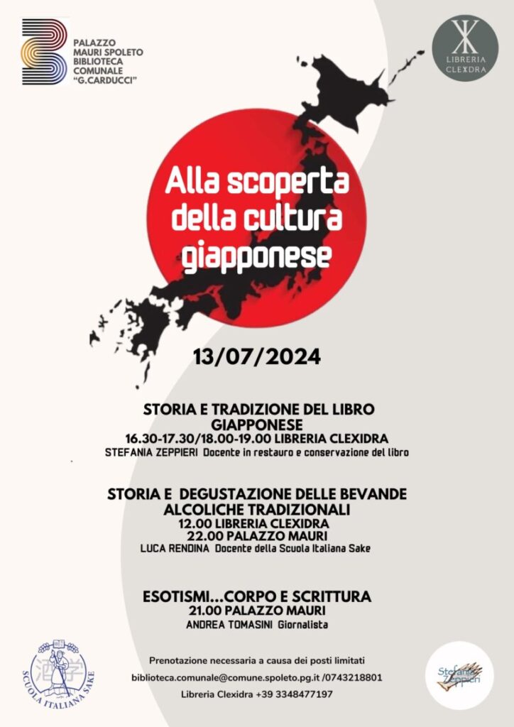 L’incontro prevede, dalle ore 16.30 alle 17.30 e poi dalle 18.00 alle 19.00 alla libreria Clexidra, un intervento di Stefania Zeppieri, docente in restauro e conservazione del libro, sulla storia e la tradizione del libro giapponese.