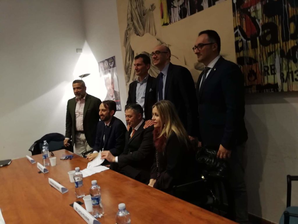 Stefano Zuccarini conquista il pubblico presente nella Sala della Corte, uomini e donne del centro destra della prima ora, un dispiegamento politico di primo ordine e una determinazione di candidato a ruolo di primo cittadino, che il rappresentante della coalizione mostra nell’intervento chiaro ed esaustivo durante la conferenza stampa.