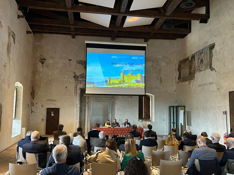 I lavori della “ROP” di ANCE si sono tenuti in un altro contenitore di grande bellezza e prestigio, la Rocca Albornoziana. Aprendo l’incontro, il presidente di ANCE Umbria Albano Morelli ha ricordato il crescente impegno richiesto alle imprese del settore edile e le conseguenti responsabilità tecniche, economiche e sociali. “Realizzare infrastrutture, edifici, scuole, ospedali – ha sottolineato – significa incidere in modo profondo sul benessere e sul futuro del Paese”.