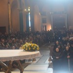 Basilica di Santa Rita a Cascia. Alle 11.00 l’Arcivescovo ha aperto la Porta Santa della Misericordia nella Basilica di Cascia, là dove è custodito il corpo di Santa Rita. La celebrazione, con la lettura di un passaggio della Bolla papale, è iniziata nei locali ubicati a metà del viale che conduce alla chiesa; si è, poi, avviata la processione fin davanti alla Porta Santa (quella posta a sinistra guardando la facciata della Basilica). Con lo stesso rito di Roccaporena mons. Boccardo l’aperta, vi ha sostato in preghiera sulla soglia e subito dopo è iniziato l’ingresso dei fedeli. Le prime, dopo il Vescovo e i preti, a varcare la Porta della Misericordia sono state le monache agostiniane, eccezionalmente uscite dalla clausura per questo storico momento. Davvero tantissimi i fedeli presenti, tra cui molti bambini casciani, le ragazze dell’Alveare di Santa Rita, devoti giunti anche da fuori Regione, il sindaco Gino Emili e altre autorità civili e militari. Con il Presule hanno concelebrato diversi sacerdoti, religiosi agostiniani e diocesani, tra cui il rettore della Basilica padre Mario De Santis. La liturgia è stata animata nel canto dalle monache. Mons. Boccardo nell’omelia ha ricordato che Dio nel fare misericordia e nel perdonare gioisce e manifesta la sua onnipotenza. «In questo Anno Santo – ha detto – siamo invitati a sentirci come ritrovati da Gesù, in quanto ciascuno di noi si è allontano da lui, tutti abbiamo bisogno di essere riconciliati e nessuno è senza peccato. E allora varcare la Porta Santa indica che tutti, anche i lontani e quelli che non si sentono degni, sono accolti dal Padre. Attraversarla – ha detto ancora – significa affidarsi a Cristo, impegnarsi in un cammino di conversione. La Porta Santa viene aperta non per dare lustro a una cittadina, ma per fare accrescere misericordia e perdono. E qui a Cascia, alla scuola di Santa Rita, donna di pazienza e di pace, donna segnata dal dolore e dalla solitudine, migliaia di persone, provenienti da ogni parte d’Italia e da vari Paesi del mondo, potranno sperimentare ciò, affidando a questa Santa della misericordia paure, affanni e gioie».