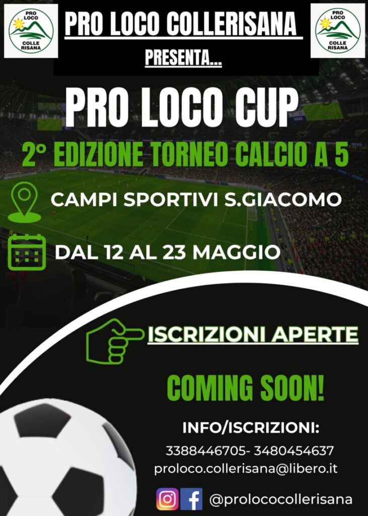 Forte del successo dello scorso anno, la Pro loco di Collerisana organizza la seconda edizione della ” PRO LOCO CUP”, competizione di calcio a 5 aperto a tutte le Pro loco del territorio spoletino.