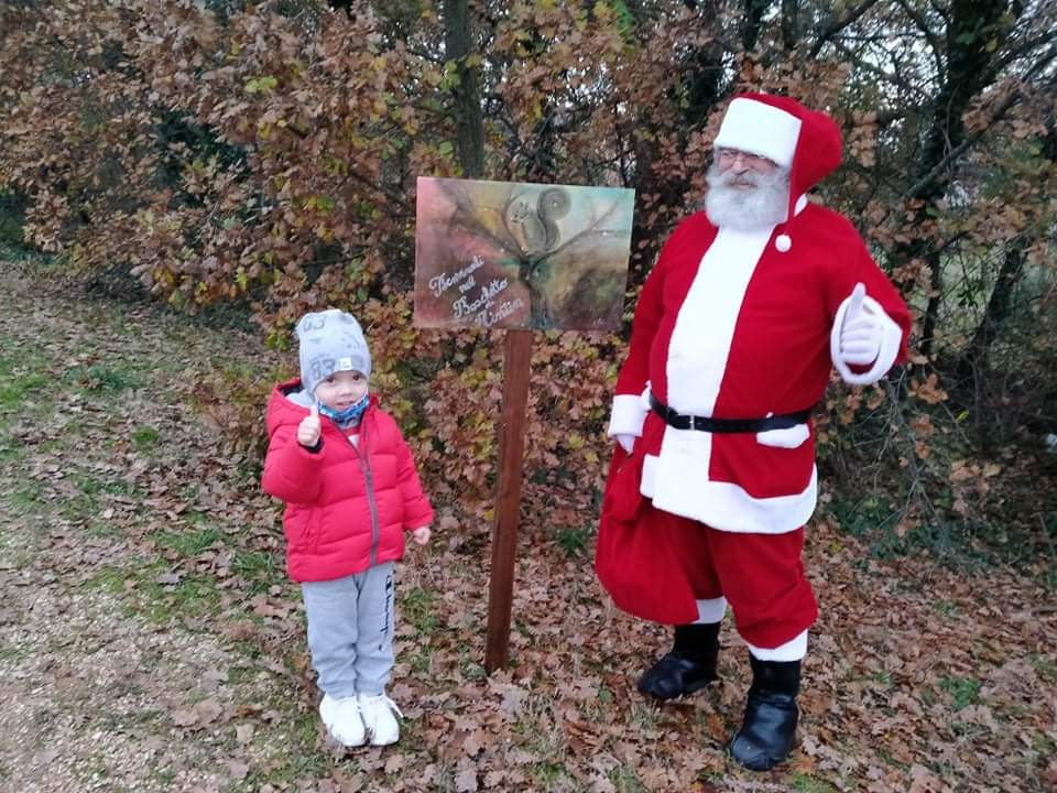Babbo Natale arriva e si siede di fianco alla capanna e a pochi passi dalla Madonnina. Il luogo è incantevole, pulito, curato con amore e dedizione da parte degli abitanti, un piccolo paradiso.