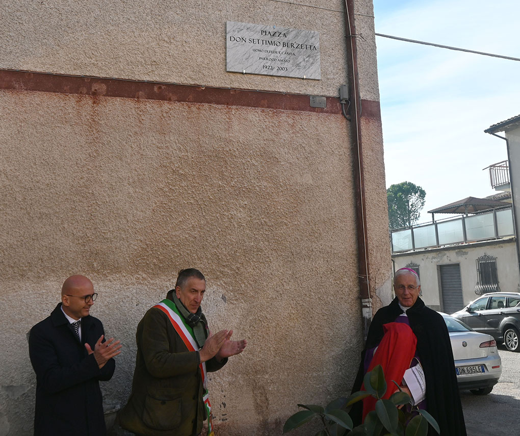 “Dio Santo, Dio forte, Dio immortale: abbi pietà di noi e del mondo intero”. Questa preghiera è stato il filo rosso che ha caratterizzato la vita di don Settimio Berzetta (1922-2003), parroco a Macerino di Acquasparta e a Poggio Lavarino di Terni prima e a Beroide di Spoleto poi, che amava ripetere più volte al giorno sia negli incontri di comunità che in quelli con le singole persone. E l’arcivescovo di Spoleto-Norcia mons. Renato Boccardo l’ha riproposta nella Messa che domenica 30 novembre 2025, I di Avvento, ha celebrato a Beroide di Spoleto in occasione dell’intitolazione al compianto don Berzetta della piazza antistante la chiesa del paese. Con il Presule ha concelebrato il pievano della Pievania di S. Giacomo mons. Alessandro Lucentini e la liturgia è stata animata dal coro della Pievania. Tanti i fedeli presenti, così come le autorità civili ad iniziare dal sindaco Andrea Sisti, dal vice presidente del consiglio comunale Sergio Grifoni, dal consigliere regionale Stefano Lisci, da assessori e consiglieri comunali.