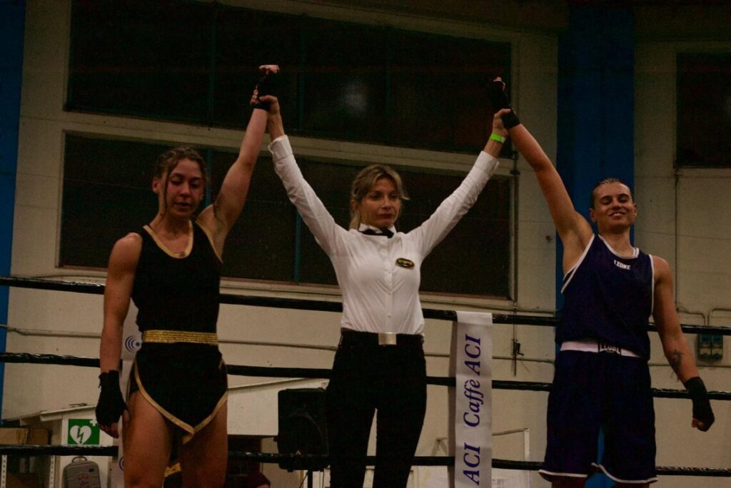Gli altri 6, invece, hanno disputato match di pugilato olimpico: Francesco Dal Soglio, nel settimo combattimento inserito nella card dell’evento, ha affrontato l’abruzzese Matteo Leone. I due non si sono risparmiati, dando vita ad un incontro entusiasmante con un ritmo da olimpiade alla fine vinto dall’esponente della società “WJ Sporting”. In seguito è stata la volta della debuttante Sara Pergolesi, che ha incrociato i guantoni con la ben più esperta Serena Cecilia Labella: la spoletina, pur dovendo combattere con una sola mano a causa di una lussazione alla spalla sinistra, ha gestito nel migliore dei modi i tre round dimostrandosi superiore all’avversaria. Gli arbitri, però, hanno optato per il pareggio.
