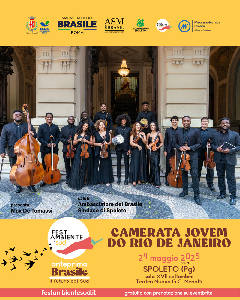 L’iniziativa, realizzata grazie alla collaborazione tra FestambienteSud, l’Ambasciata del Brasile in Italia, il Comune di Spoleto, Ação Social pela Música, la Meccanotecnica Umbra, vedrà la presenza a Spoleto dell’ambasciatore Renato Mosca de Souza.