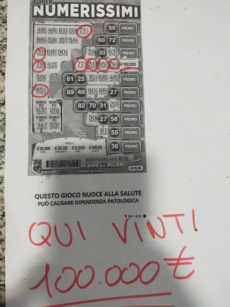 “Ci ha chiesto se aveva visto bene l’importo della vincita – spiega Gianluca, il titolare del bar – abbiamo verificato il tutto e confermato l’importo. Ben 100.000 Euro. Da parte nostra, un grosso in bocca al lupo al vincitore con l’augurio che possa realizzare qualche sogno nascosto.”