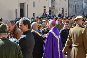 Venerdì 18 marzo, in occasione del consueto appuntamento con il precetto pasquale, è stato celebrato a Spoleto il Giubileo delle Forze Armate. Tutte le varie istituzioni militari e paramilitari si sono ritrovate presso la chiesa di S. Filippo per la liturgia penitenziale presieduta dall’arcivescovo di Spoleto-Norcia mons. Renato Boccardo. Al suo fianco, don Paolo Peciola, assistente spirituale della Caserma “Garibaldi”, che ha curato l’organizzazione della giornata, don Jozef Gercàk, cappellano dell’Istituto per Sovrintendenti P.S. “R. Lanari”, don Paolo Medaglini, assistente spirituale dei Carabinieri e dei Granatieri dell’Umbria e altri sacerdoti della città. Al termine di questo primo momento, processionalmente, i presenti si sono diretti verso la basilica Cattedrale per il passaggio attraverso la Porta Santa e la partecipazione alla Messa. Ad accoglierli, in Piazza Duomo, la Banda dei Granatieri di Sardegna: la giornata, infatti, è stata l’occasione anche per ricordare il centenario dell’istituzione del Battaglione Cengio.