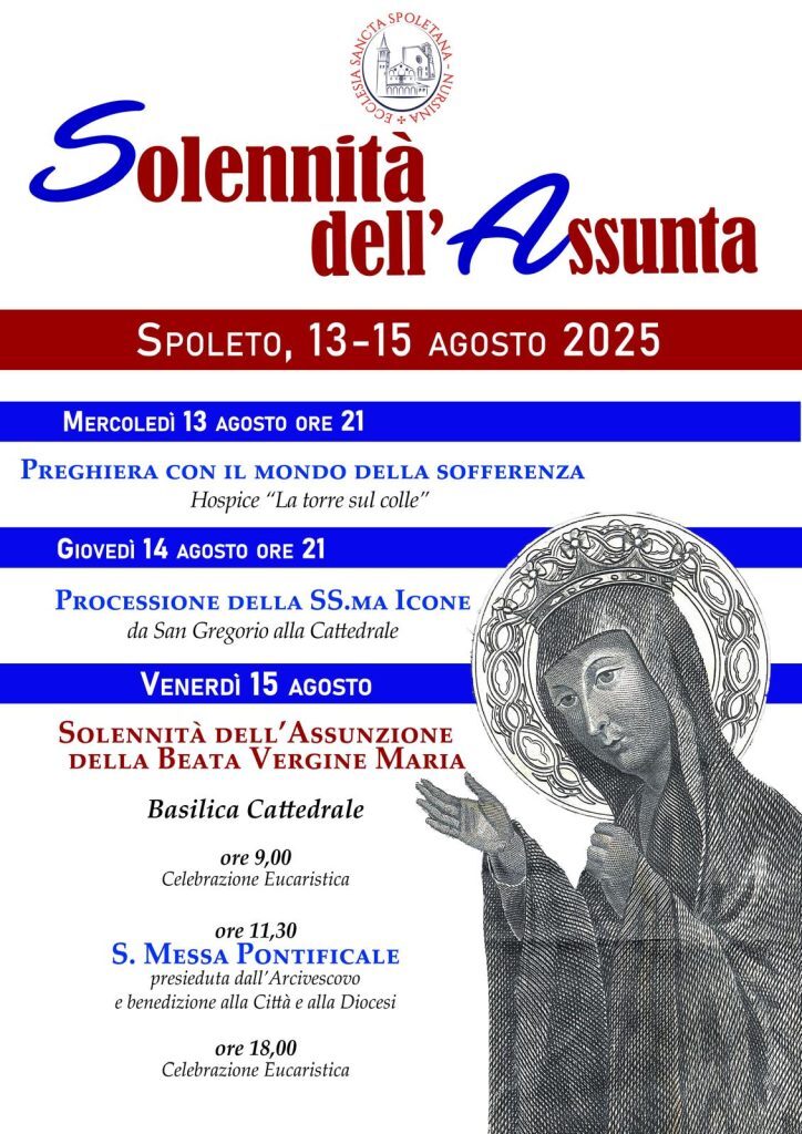 Venerdì 15 agosto si celebrerà la solennità dell’Assunzione della Beata Vergine Maria, patrona principale dell’archidiocesi di Spoleto-Norcia insieme a S. Ponziano e S. Benedetto.