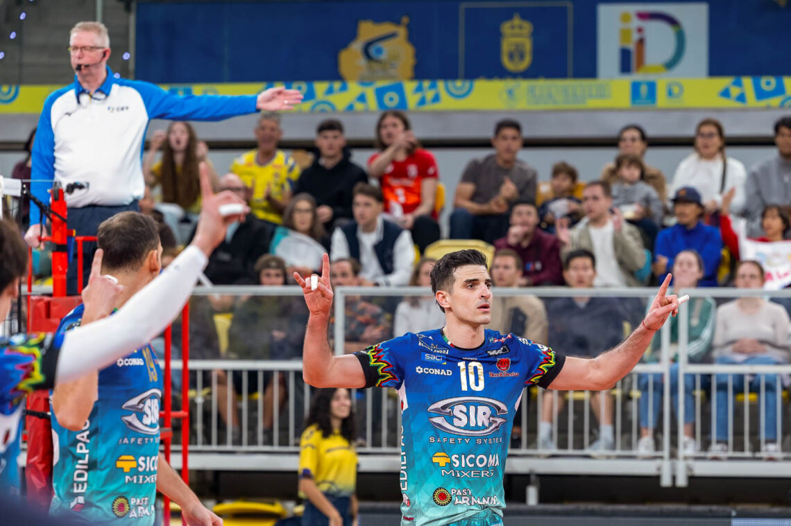 I padroni di casa, spinti dal sostegno del proprio pubblico, e dai colpi di un particolarmente ispirato Osmay Juantorna, grande ex protagonista del campionato italiano e con ben tre Champions League nel suo personale palma res, partono sprint e costringono Perugia ad inseguire. Ma i Block Devils recuperano punto su punto e si portano a casa il primo parziale, per poi dominare, letteralmente, la seconda frazione, condotta sempre avanti e vinta 25-20. Ma la Gran Canaria Arena aveva in serbo altre emozioni per questa serata, perché i padroni di casa hanno alzato i giri e dopo aver rimontato lo svantaggio hanno portato il match al tiebreak. Battute potenti, difese spettacolari, scambi lunghi e attacchi di fuoco sono stati il filo conduttore di tutta l’ultima frazione. Proprio per questo, vincerla, ha un valore ancora più importante per i ragazzi del presidente Gino Sirci, capaci di annientare qualsiasi tipo di rimonta avversaria e di prendersi, con merito, questo match. Il capitano distribuisce il gioco anche questa sera in maniera equilibrata dando ampio spazio ai centrali. Sontuoso il bottino a referto di Wassim Ben Tara, che anche questa sera è MVP del match con 24 punti, un ace e tre muri. In doppia cifra anche un super Sebastian Solè, che chiude il match a 14 punti, di cui due muri e Yuki Ishikawa, con 15 punti e un ace. La squadra archivia l’incontro con il 49% di efficacia in attacco, 9 muri e tre servizi vincenti.