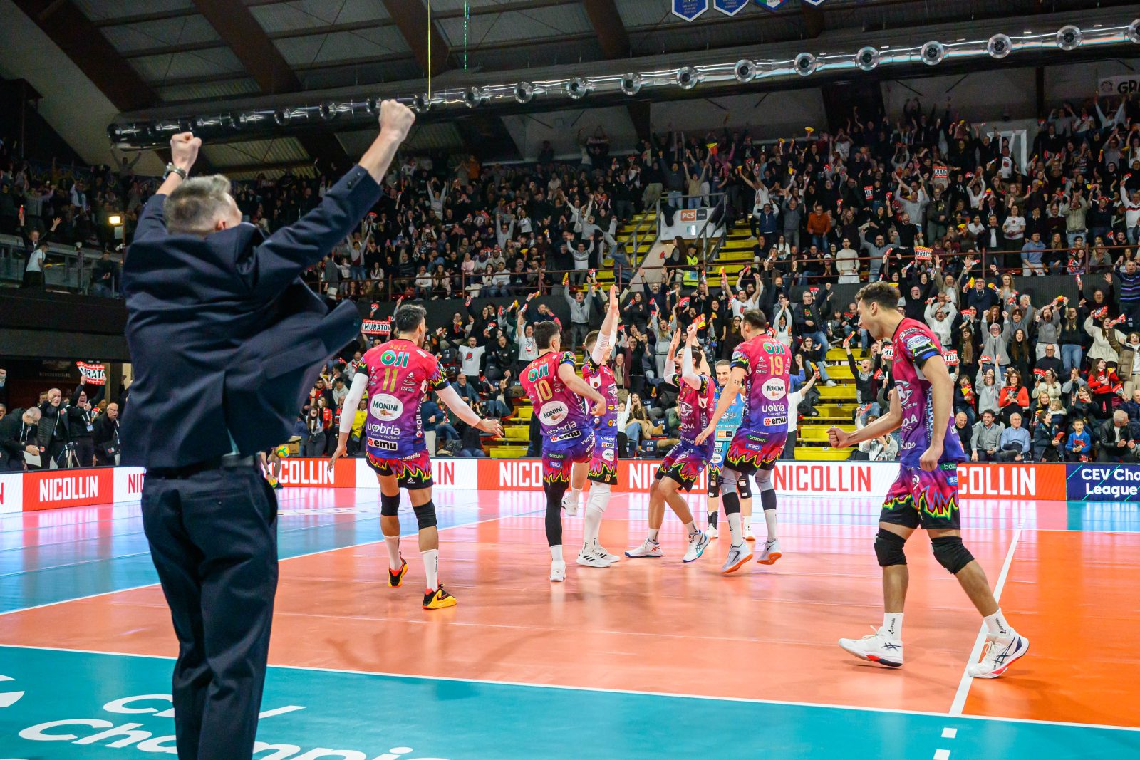 Una serata indimenticabile sotto le volte dell’impianto di Perugia! I Campioni d’Europa in carica della Sir Sicoma Monini, dopo aver vinto la gara di andata dei Quarti in casa del Guaguas Las Palmas al tie-brak, staccano il pass per le Final Four di Champions League, in programma sabato 16 e domenica 17 Maggio all’Inalpi Arena di Torino, imponendosi sulla formazione canaria nel quarto di ritorno con un netto 3-0. Due set conquistati in scioltezza (25-18, 25-21) e un terzo parziale combattuto invece punto a punto, con gli spagnoli che, spinti dagli attacchi a tutto braccio di Osmany Juantornena e i colpi dal centro di Spencer, hanno tentato la rimonta costringendo i padroni di casa ad inseguire. Ma Perugia ha dimostrato di volere la vittoria piena, e lo ha fatto riconquistando fluidità nel cambio palla e arginando le fiammate avversarie colpo su colpo. I Block Devils vincono la sfida in tutti i fondamentali: in battuta, con 3 ace, in attacco, con il 63% di efficacia offensiva a fronte del 54% dei canari e 10 muri in soli 3 set. L’mvp di serata è Oleh Ploltnytskyi, che chiude con 13 punti, un ace e il 63% in attacco.