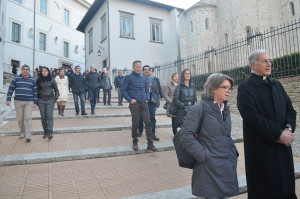 rentina di coppie di fidanzati che hanno partecipato o stanno partecipando ai percorsi in preparazione al matrimonio cristiano, promossi dall’Ufficio di pastorale familiare della Diocesi diretto da don Sem Fioretti e dai coniugi Cristina e Roberto Mariottini. Ai futuri sposi è stato brevemente illustrato il significato dell’Anno Santo della Misericordia indetto da papa Francesco e sono stati invitati a confrontarsi – divisi in gruppi e con l’aiuto delle coppie guida – sulle opere di misericordia corporali (dar da mangiare agli affamati, dar da bere agli assetati, vestire gli ignudi, alloggiare i pellegrini, visitare gli infermi, visitare i carcerati, seppellire i morti) e spirituali (consigliare i dubbiosi, insegnare agli ignoranti, ammonire i peccatori, consolare gli afflitti, perdonare le offese, sopportare pazientemente le persone moleste, pregare Dio per i vivi e per i morti). Poi, Stefania Nardicchi, responsabile dell’Ufficio beni culturali della Diocesi, ha illustrato la storia del Museo e le opere in esso contenute, in particolare quelle legate al tema della misericordia. L’Arcivescovo ai fidanzati ha detto che la misericordia «non è un sentimento dolciastro, ma è uno stile di vita. Essere misericordiosi, specialmente nella vita di coppia, – ha proseguito – vuol dire essere capaci di perdono, di ascolto, di sapersi aspettare reciprocamente, di comprendersi anche quando emergono i nostri lati spigolosi». Poi, mons. Boccardo ha detto cosa si aspetta da questi giovani, da coloro che a breve costituiranno nuove famiglie: «Che rimaniate a casa, cioè nella Chiesa che è la vostra casa, pronta ad accogliervi a braccia aperte. E poi, investite tempo nelle relazioni con altre coppie di sposi: così sarà meno faticoso affrontare le fatiche, che non mancheranno, e sarà più bello condividere le gioie. Portate in questa nostra società l’entusiasmo della vita a due. C’è tanto bisogno di vedere un uomo e una donna che si vogliono bene, che sono fedeli al progetto che Dio ha pensato per loro; testimoniate che fare famiglia è bello e vale la pena. Mi commuovo quando incontro coppie sposate da 50 e addirittura da 65 anni che mi dicono: “ci vogliamo ancora bene”. Sognare insieme dunque è ancora possibile e per farlo è necessario riscoprire ogni giorno le ragioni della scelta del matrimonio. Il vostro Vescovo – ha concluso Boccardo – vi augura di sperimentare la dolcezza e la passione viscerale del frutto del vostro amore che sono i figli che Dio vorrà donarvi». Intorno alle 18.00, dopo una foto di gruppo dinanzi alla facciata della Basilica di Sant’Eufemia, Arcivescovo, fidanzati e coppie guida sono scesi in Cattedrale per la benedizione delle palme, il passaggio dalla Porta Santa della Misericordia e la celebrazione eucaristica nella Cappella del Santissimo Sacramento. Il pomeriggio si è concluso con un momento di fraternità nel Salone dei Vescovi.