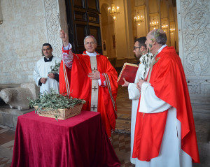 Nella Domenica delle Palme o più propriamente Domenica della Passione del Signore la Chiesa ricorda l’ingresso di Gesù a Gerusalemme a dorso di un asino e avvia la solenne celebrazione della Settimana Santa nella quale vengono ricordati e celebrati gli ultimi giorni della vita terrena di Cristo, con i tormenti interiori, le sofferenze fisiche, i processi ingiusti, la salita al Calvario, la crocifissione, la morte e sepoltura e infine la Risurrezione. Mons. Renato Boccardo, arcivescovo di Spoleto-Norcia, in questa solennità, caratterizzata dalla benedizione dei ramoscelli di ulivo, ha presieduto due celebrazioni eucaristiche nella Basilica Cattedrale di Spoleto.![]()
