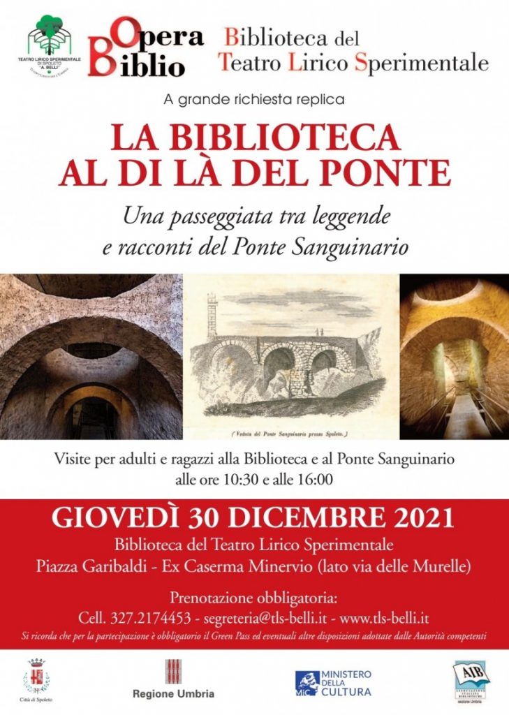 Dato inoltre il grande successo dell’iniziativa correlata al Ponte sanguinario, il giorno 30 dicembre 2021 la stessa verrà replicata con “La biblioteca al di là del Ponte” con visite alla Biblioteca e al Ponte Sanguinario in diverse fasce orarie: la mattina alle ore 10:30 e il pomeriggio alle ore 16.00.