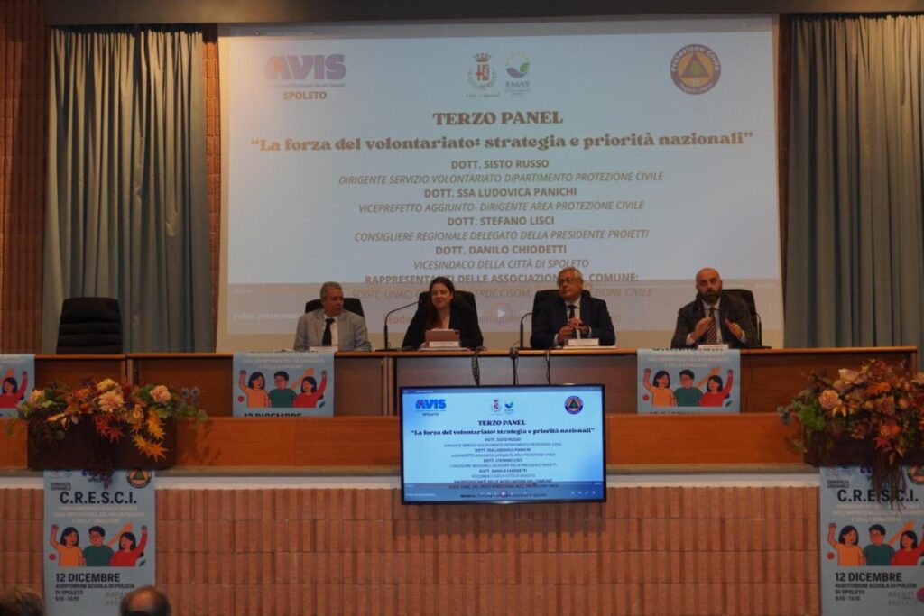 Venerdì 12 dicembre l’Auditorium dell’Istituto per Sovrintendenti della Polizia di Stato “Rolando Lanari” ha ospitato il convegno C.R.E.S.C.I., organizzato dalla Consulta Giovanile Comunale in collaborazione con la Protezione Civile del Comune di Spoleto e l’AVIS di Spoleto.