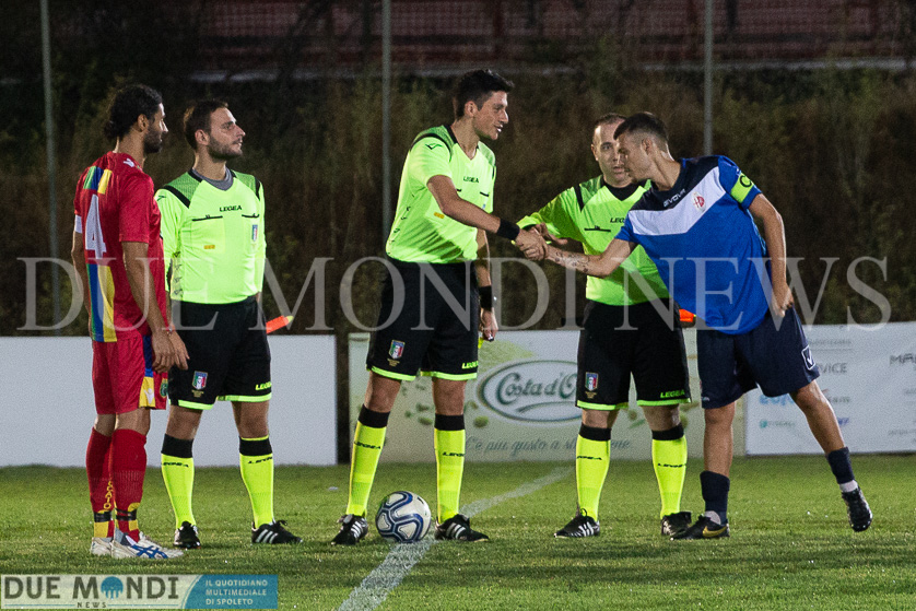 SSD SPOLETO CALCIO: 1 Cosimetti, 2-Balducci, 3 Rosati, 4 Ceccarelli (21′ 14 Dahman) , 5 Kiwobo, 6 Ferreira, 7 Alfano (23’st 13 Bianchi), 8 Rondinelli (24’st 18 Speranza), 9 Luparini, 10 Veneroso, 11 Colangelo