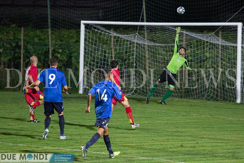 Al 16’ lo Spoleto va vicino al vantaggio con un colpo di testa di Kiwobo, su calcio di punizione del solito Veneroso, che sfiora il palo.