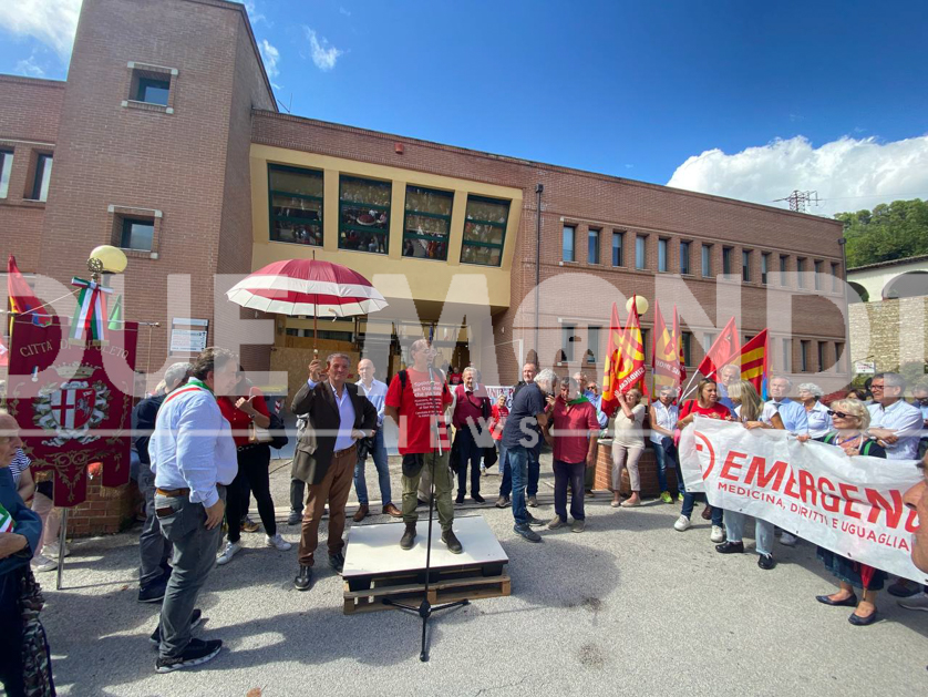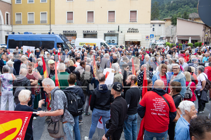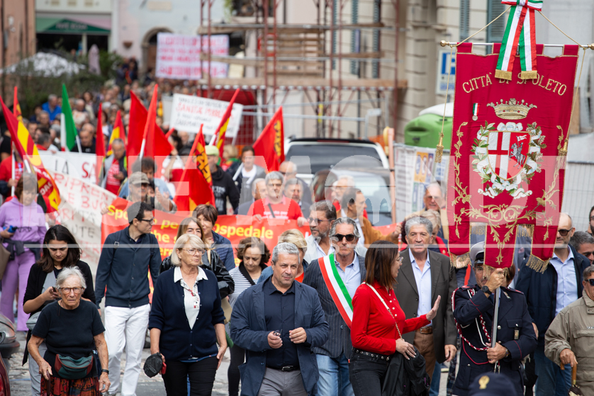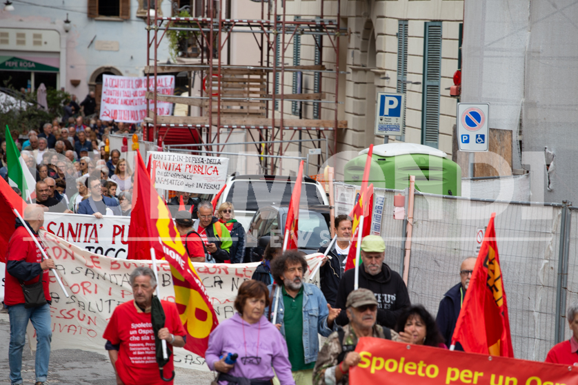 (DMN) Spoleto – alcune immagini del corteo cittadino del 23 settembre 2023 per difendere l’ospedale San Matteo degli Infermi e la sanità pubblica.
