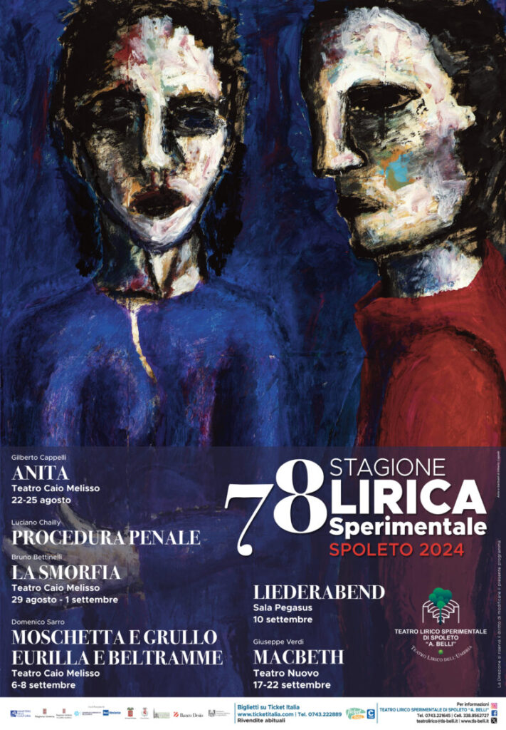 Giunta quest’anno alla sua 78° edizione, torna a Spoleto e nei principali teatri dell’Umbria la stagione del Teatro Lirico Sperimentale “A. Belli” di Spoleto che aprirà con la consueta kermesse musicale “Eine Kleine Musik 2024” al Teatro Caio Melisso (anteprima per gruppi organizzati: giovedì 22 agosto ore 20.30 – spettacoli: venerdì 23 agosto ore 20.30, sabato 24 agosto ore 20.30 e domenica 25 agosto ore 17.00), in collaborazione con il Comune di Spoleto nell’ambito di Accade d’estate a Spoleto. In scena Anita un’opera di Gilberto Cappelli – vincitore del Premio Abbiati nel 2001 – su libretto di Raffaella Sintoni e Andrea Cappelli. L’opera, composta su commissione dello Sperimentale, sarà eseguita in prima rappresentazione assoluta con la direzione musicale di Marco Angius, maestro del coro Mauro Presazzi, la regia e le scene di Andrea Stanisci, i costumi di Clelia De Angelis e le luci di Eva Bruno.