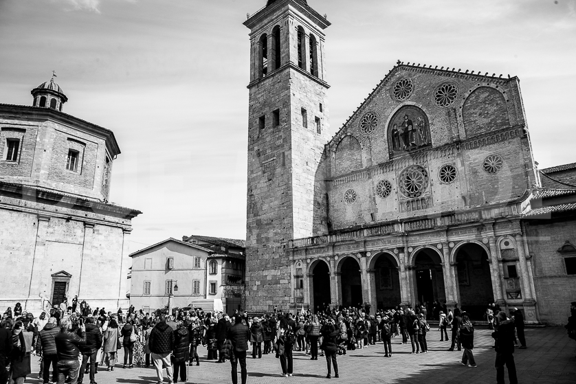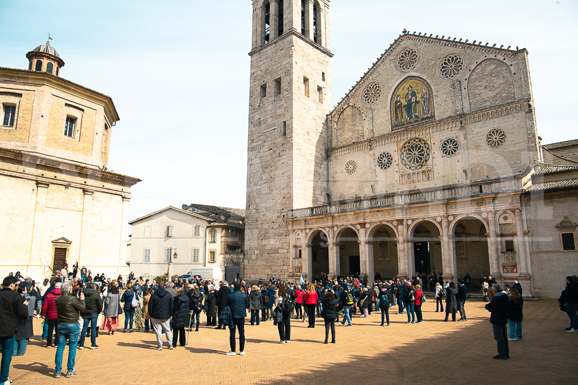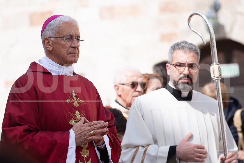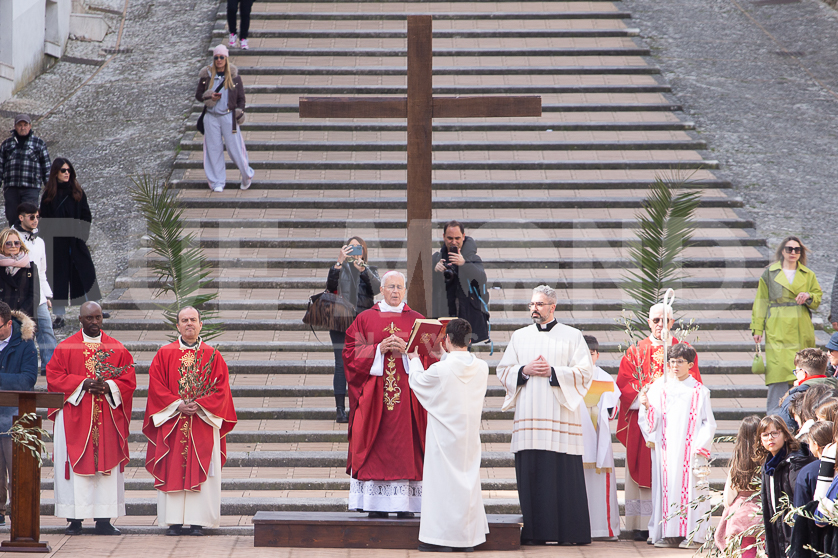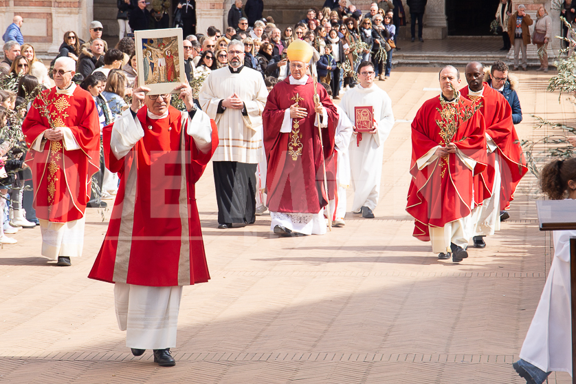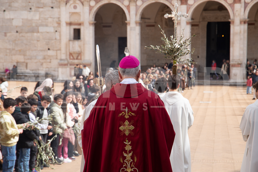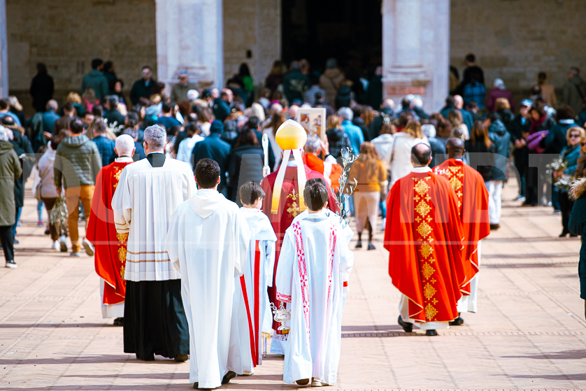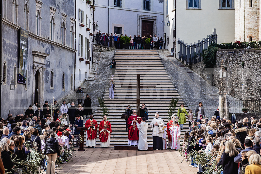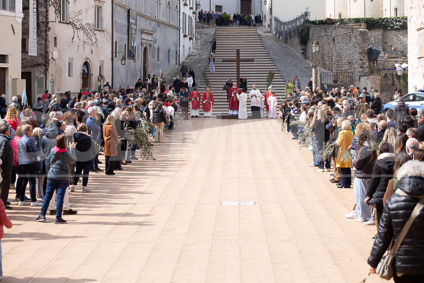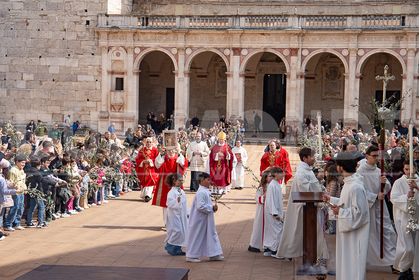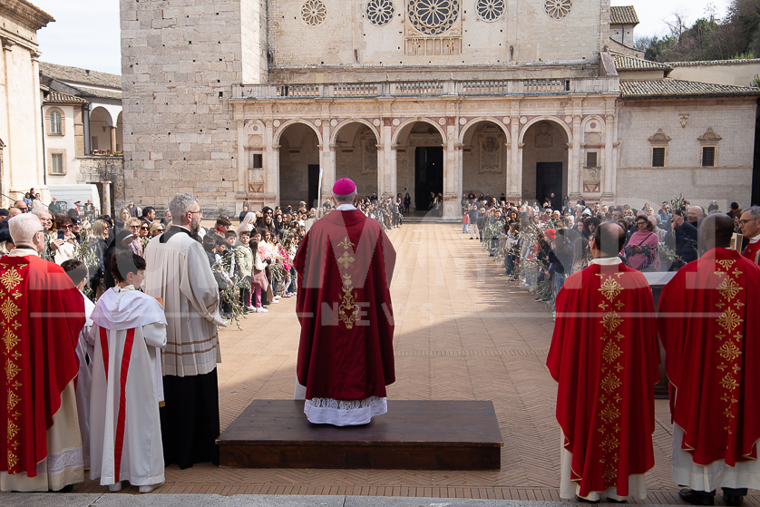 Con la Domenica della Passione, detta anche delle Palme, celebrata il 29 marzo 2026, si entra nella Settimana Santa, tempo durante il quale si contemplano gli ultimi momenti della vita di Gesù. Si ricorda la sua entrata a Gerusalemme, accolto da una folla festante, e quindi la memoria della sua Passione. La Messa è interamente caratterizzata dal tema della passione di Gesù. Nella Basilica Cattedrale di Spoleto è stata presieduta dall’arcivescovo Renato Boccardo insieme ai presbiteri e ai fedeli della Pievania di S. Ponziano, tra cui i bambini e ragazzi della catechesi, che hanno raggiunto il Duomo a piedi dalla chiesa di S. Gregorio. La benedizione dei ramoscelli di ulivo è avvenuta in Piazza e poi c’è stata la processione fin dentro la Cattedrale: “Osanna al figlio di Davide! Benedetto colui che viene nel nome del Signore! Osanna nell’alto dei cieli!”.