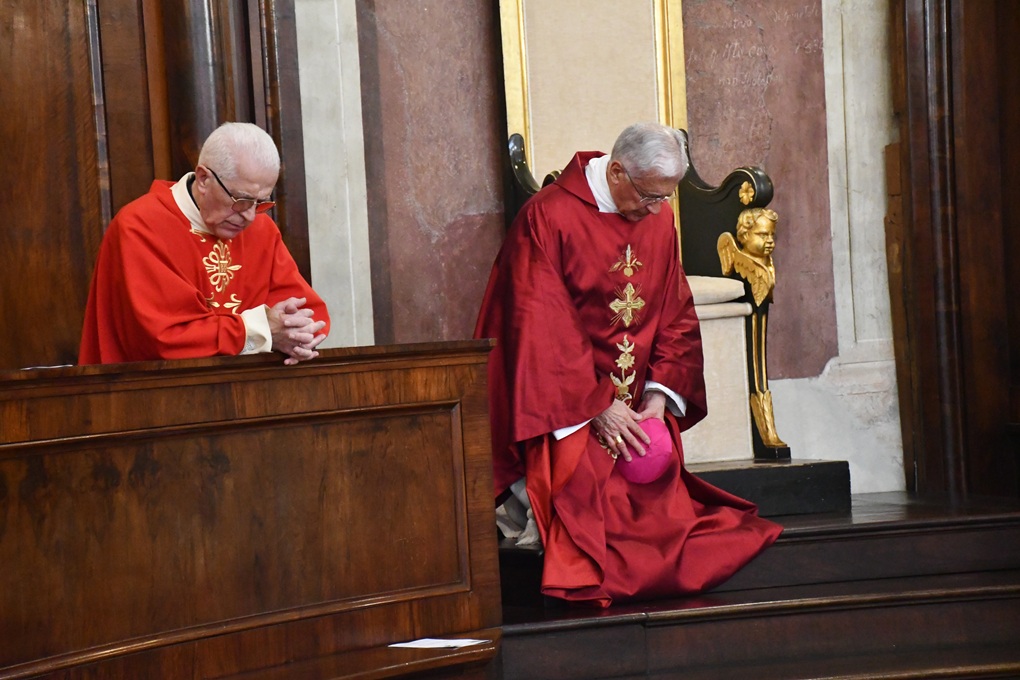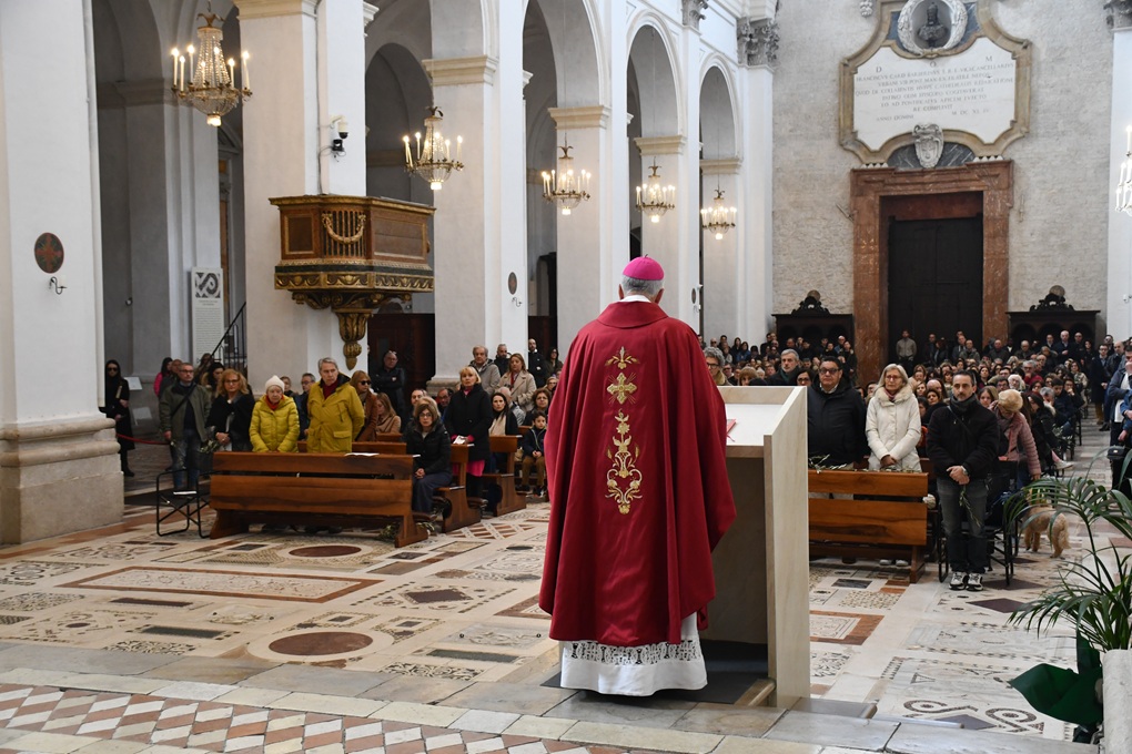 «In questa settimana – ha detto mons. Boccardo nell’omelia – il ritmo dell’anno liturgico rallenta, possiamo seguire Gesù giorno per giorno, quasi ora per ora. La cosa più santa che possiamo fare è stare con lui: “Uomini e donne vanno a Dio nella loro sofferenza, piangono per aiuto, chiedono pane e conforto. Così fanno tutti, tutti. I cristiani invece stanno vicino a Dio nella sua sofferenza” (D. Bonhöffer)». «Sono giorni – ha proseguito il Presule – per stare vicino a Dio nella sua sofferenza, perché la passione di Cristo si consuma ancora, in diretta, nelle infinite croci del mondo: oggi, in particolare, abbiamo tragicamente sotto gli occhi la strage infinita che si rinnova ogni giorno in Ucraina, in Medio Oriente e in tante altre regioni del mondo, diffondendo non solo sofferenza e morte ma anche generando strascichi di odio e desiderio di vendetta che metteranno radici nelle nuove generazioni. La memoria viva della passione di Gesù ci chiama a stare accanto a questi odierni crocifissi non solo in maniera ideale o sentimentale, ma a lasciarci concretamente ferire dalle loro ferite, a provare dolore per il loro dolore, a con-patire e a portare conforto. La croce disorienta, ma se persistiamo a restarle accanto, come le donne sul Calvario, a guardarla come il centurione esperto di morte, di certo non capiremo tutto, ma una cosa sì: che lì, in quella morte, è il primo vagito di un mondo nuovo».