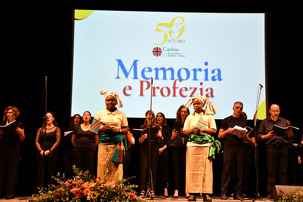 La cittadella della carità a S. Nicolò. «Ci piace sognare in grande», ha concluso don Edoardo. «Per questo stiamo lavorando per realizzare una sede per la nostra Caritas diocesana che sia come una piccola cittadella della carità nella Città, braccio teso a tutti senza differenza, luogo aperto all’ascolto, all’accoglienza, alla condivisione e alla compassione. Sarà nel quartiere di San Nicolò (nei locali della ex parrocchia), una delle zone più popolose della città, facilmente raggiungibile da tutta l’Archidiocesi. Vogliamo affidare questo progetto a tre sante donne della nostra Chiesa, che nel tempo sono state segni concreti di carità: Scolastica da Norcia, Rita da Cascia e Chiara da Montefalco». Il pomeriggio in teatro è terminato con un ballo africano proposto da due giovani suore della Sacra Famiglia di Spoleto della repubblica Democratica del Congo.
