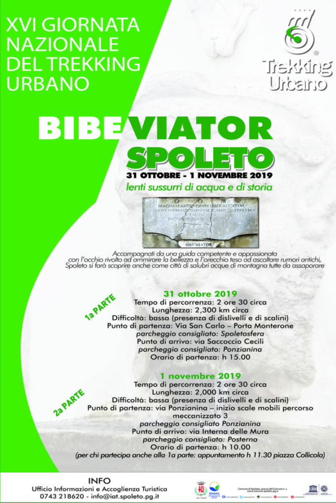Questi i punti di interesse dei percorsi organizzati dal Comune di Spoleto in occasione della XVI Giornata Nazionale del Trekking Urbano, dedicata al tema “Lenti Sussurri di Acqua e di Storia”, in programma giovedì 31 ottobre 2019.