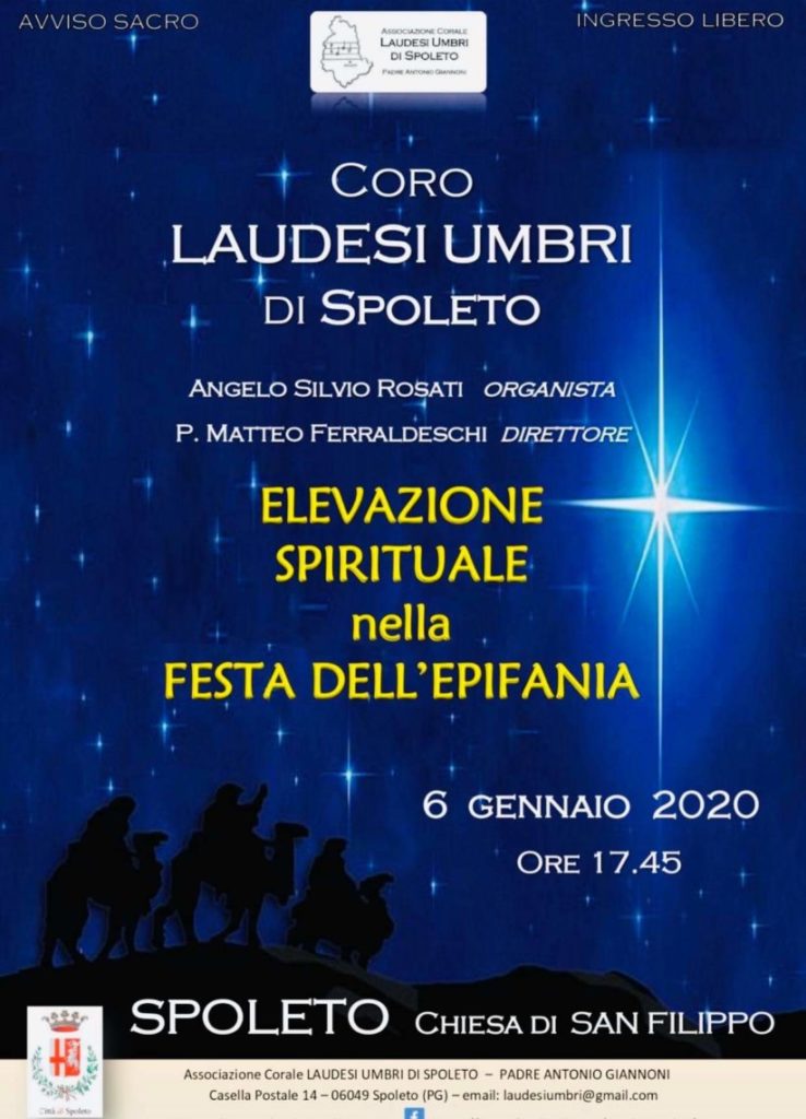 (DMN) Spoleto – il giorno dell’Epifania, a Spoleto, si rinnova l’appuntamento con l’Elevazione Spirituale dei Laudesi Umbri “P. Antonio Giannoni”.