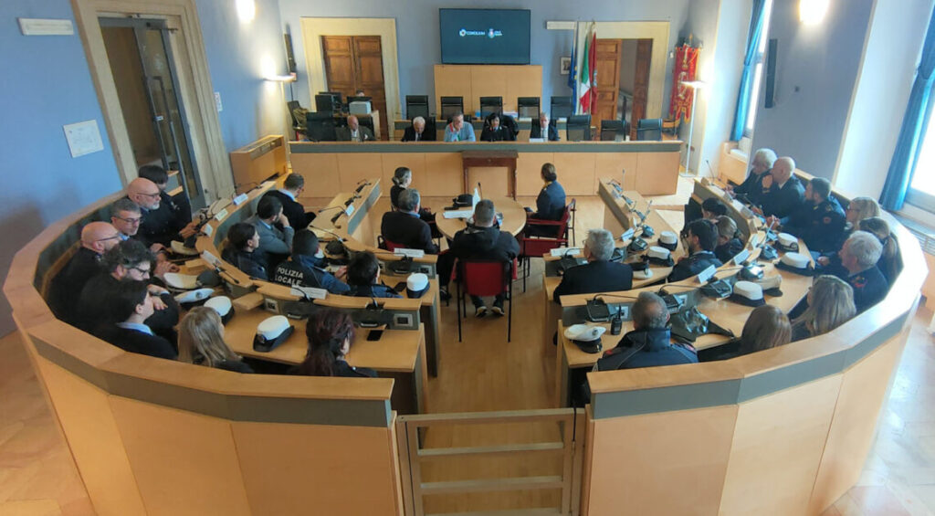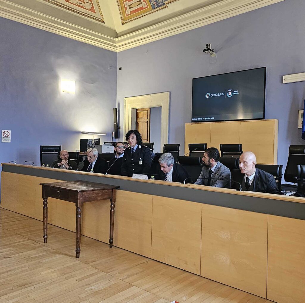 Un momento di confronto, arrivato a conclusione di un percorso formativo che ha visto impegnati agenti e ufficiali della Polizia Locale di Spoleto nel progetto “Mind Op”, a cui hanno partecipato il sindaco Andrea Sisti, il vicesindaco con delega alla vigilanza e sicurezza della Città e del territorio, Stefano Lisci e il dirigente generale della Polizia di Stato a.r., Balduino Simone. Presenti anche il capitano Teresa Messore, Comandante della compagnia dei Carabinieri di Spoleto e il dirigente del commissariato di Spoleto della Polizia di Stato Antonella Fuga Paglialunga.