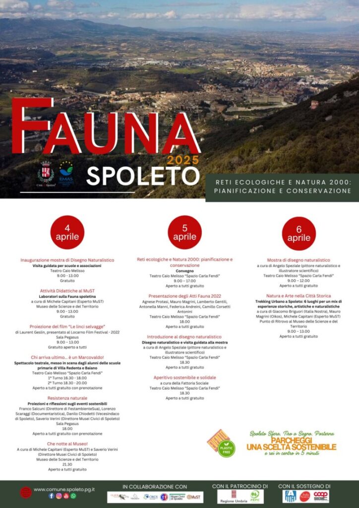 L’evento, plastic free, “Fauna” è stato avviato nel 2019 con un convegno sulla figura del professore Bernardino Ragni, zoologo spoletino scomparso nel 2018 che ha dedicato la sua esistenza allo studio e alla conoscenza della fauna selvatica, ed è proseguito negli anni successivi con convegni e iniziative dedicati al “Gatto Selvatico Europeo”, al tema “Il lupo in Italia”, ”Aquila reale”, “Fauna in città” e “Fauna in campagna: biodiversità e paesaggio rurale” che hanno permesso di approfondire la conoscenza della fauna selvatica italiana.
