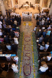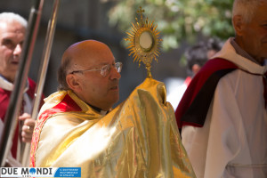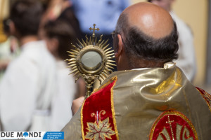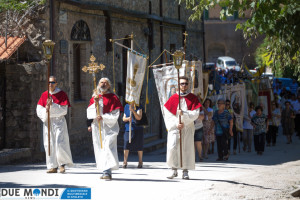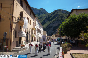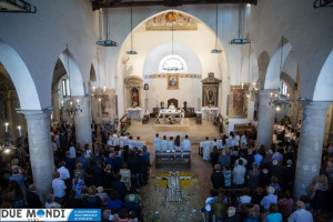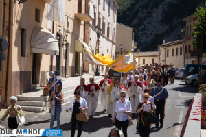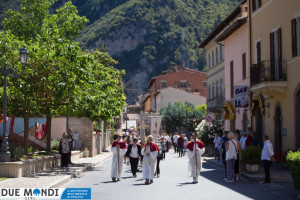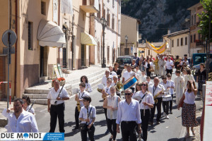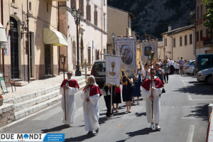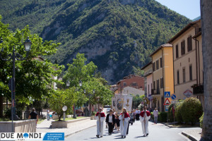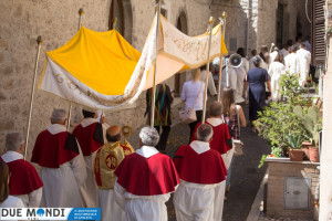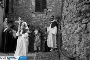 (DMN) Ferentillo – Nella domenica appena trascorsa, la Chiesa ha celebrato la solennità del Corpo e del Sangue di Cristo. A Ferentillo, il parroco, Don Rinaldo Cesarini, ha celebrato alle 9.30 la prima Messa del giorno nella Chiesa di San Lorenzo, successivamente ha avuto luogo la lunga processione eucaristica fino alla Chiesa di Santa Maria dove, alle ore 11.oo, nel corso della seconda Messa, diciotto bambini hanno ricevuto la prima comunione. La processione è stata animata dalla banda musicale mentre dai campanili risuonavano i rintocchi delle campane suonate dal gruppo Campanari di Ferentillo