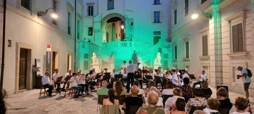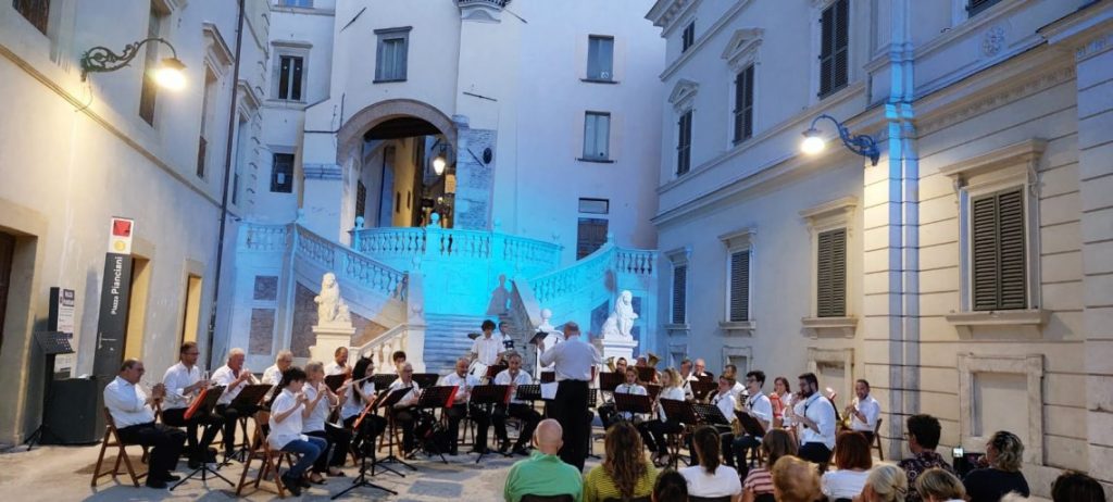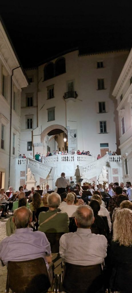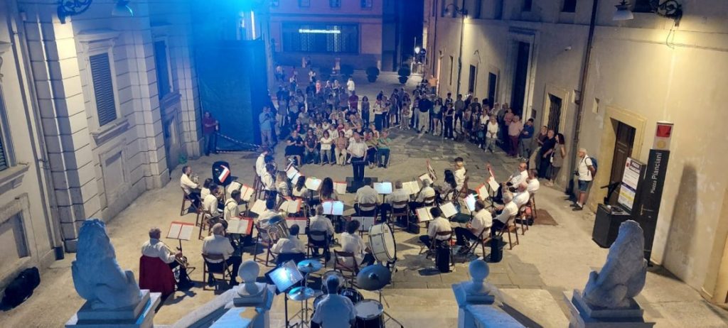 (DMN) Spoleto – il 21 giugno, per celebrare il solstizio d’estate, in oltre 120 nazioni di tutto il mondo si tiene la “Festa della Musica”. A Spoleto è stata celebrata con un emozionante concerto della Banda Musicale “Città di Spoleto”, diretta dal M° Angelo Silvio Rosati, in piazza Pianciani. Per una sera, la scalinata scalinata progettata dall’architetto Ugo Tarchi nel 1923 e recentemente restaurata si è trasformata nella scenografia ideale per un teatro a cielo aperto nel cuore dell’acropoli cittadina. Un esperimento riuscito e sicuramente da ripetere sperando nella riqualificazione della pavimentazione della piazza e nel ricollocamento del monumento a Luigi Pianciani da tanti (troppi) anni custodito nei magazzini comunali.
