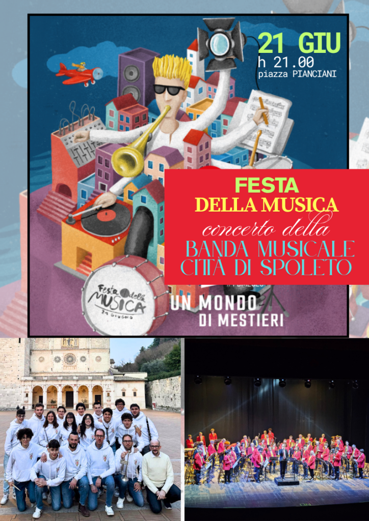 “Anche quest’anno il Comune di Spoleto celebrerà la Festa della Musica dedicata alle diverse opportunità professionali che questo mondo offre – ha dichiarato il vicesindaco Danilo Chiodetti – In questa giornata ci proponiamo di coinvolgere il maggior numero possibile di persone, non importa l’età, il background culturale o il livello di competenza musicale: tutti sono invitati a partecipare. Sarà una occasione speciale per promuovere la musica in tutte le sue forme e celebrare il suo valore e linguaggio universale come mezzo di espressione e connessione. Un ringraziamento speciale va alla Banda musicale “Città di Spoleto” e alla sua formazione “Young” che ci supporta in molte occasioni nel corso delle iniziative che organizziamo. Che si tratti di un concerto all’aperto, di una celebrazione o di un evento, la loro presenza è una certezza. Grazie di cuore! La vostra musica e il vostro talento accompagnano la nostra comunità in ogni passo del suo cammino”.