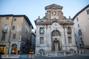 (DMN) Spoleto – Quando un vero spoletino dice ‘Piazza’, intende un solo luogo, senza possibilità di errore. La piazza di Spoleto per antonomasia è quella del Mercato, designata già nell’antichità come Foro della città romana ed arrivata fino ai giorni nostri, se pur profondamente mutata dal punto di vista strutturale, come cuore sociale, storico e culturale della nostra città. Quel luogo romantico ed impregnato di ricordi della Spoleto che fu, è tornato a risplendere nella sua interezza grazie ai lavori di rifacimento e ripavimentazione terminati nei giorni scorsi e durati ben diciotto mesi. Contestualmente alla piazza, è tornata al suo antico splendore anche l’antica Fonte, grazie all’intervento del Rotary Club che ha risposto in maniera entusiasta ad un bando per la richiesta di una sponsorizzazione per il restauro, pubblicato nel giugno dello scorso anno dal Comune di Spoleto. Il Rotary Club, si è fatto carico dell’importo complessivo necessario per il restauro, circa 60.000 Euro, grazie ai fondi del club stesso ed al contributo di altre importanti realtà come la Fondazione Cassa di Risparmio di Spoleto ed il settimanale Panorama. Gli studi ed il recupero del monumento sono stati effettuati dalla Coo.Be.C di Spoleto. Il grande orologio, posto al centro della fontana, era stato già restaurato nel giugno del 2015, a titolo gratuito, da due artigiani spoletini, Massimo e Giuseppe Viti. Appena tolti i veli dal cantiere, abbiamo scattato alcune foto e vogliamo proporre ai nostri lettori un confronto: com’era la fontana nel gennaio 2017 e com’è oggi.