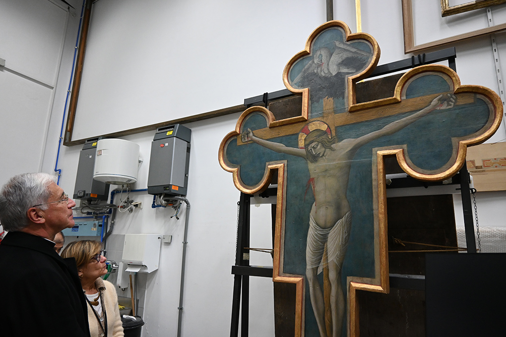 Un restauro complesso. Furono ben trentatré i frammenti del Crocifisso ritrovati tra le macerie dagli addetti della Protezione Civile e dai restauratori dei Musei Vaticani che, in momenti diversi, intervennero sul posto per il recupero dei beni artistici. A più di 6 anni da quell’infausto 30 ottobre 2016, la Croce di Sant’Eutizio sarà per la prima volta nuovamente visibile ai visitatori e pellegrini grazie all’intervento multidisciplinare e sinergico del Gabinetto di Ricerche Scientifiche applicate ai Beni Culturali e del Laboratorio di Restauro Dipinti e Materiali lignei che, con questa esposizione, dà il via formale alle celebrazioni per il centesimo anniversario di attività.