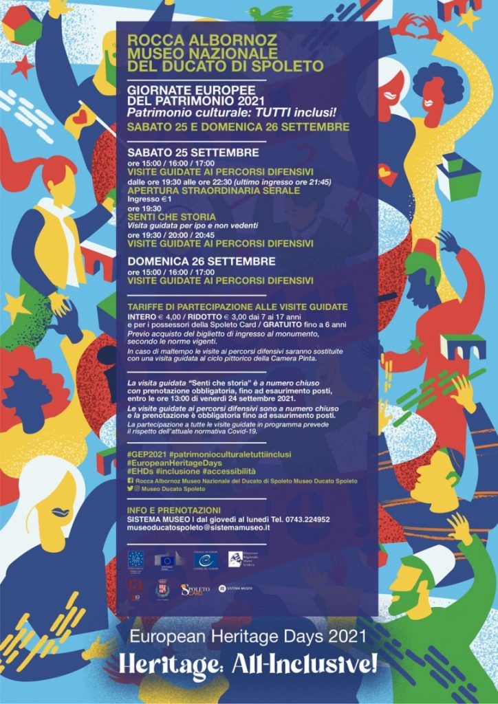 In occasione delle Giornate Europee del Patrimonio 2021 – Patrimonio culturale: TUTTI inclusi! – sabato 25 e domenica 26 settembre il Comune di Spoleto, in collaborazione con Sistema Museo, promuove un programma di iniziative per valorizzare il patrimonio culturale cittadino.